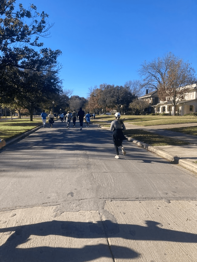 Swiss Avenue is where it hit me that my time was looking good. I turned from podcasts to music and sprinted down the beautiful and historical mansions of this district. Swiss was the place where CEOs and other C suite folks lived because of the proximity to downtown. It is an interesting block, because all surrounding Swiss Ave is a grungier neighborhood, however the racecourse allows runners to take a step back in time by running the entire length of the historical street.