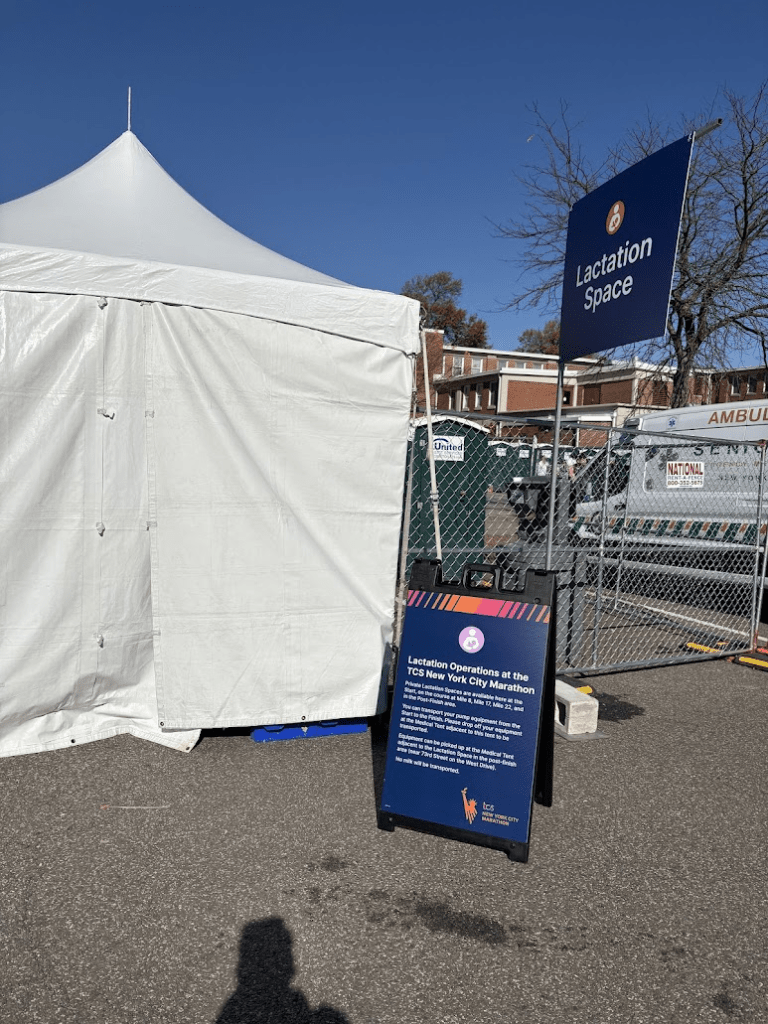 Just because we can run a marathon within a year-ish of childbirth doesn’t mean it is a great idea BUT if you’re here, you’re my kinda gal. NYC Marathon is one of a kind, I’ve run it 3 times and it is an incredible experience. 2024 was the first time I’ve used the Lactation benefits provided by NYRR. Let me tell you – It is seriously so incredible that they offer accommodations for breastfeeding moms. We need every World Marathon Major to follow suit. I was telling runners of all genders about the lactation support that NYC offers, and it continues to be such a game changer for supporting women in sport. You can read an article from Parents Magazine here to learn more about it and the olympian / total queen that started the program, Alysia Montano.